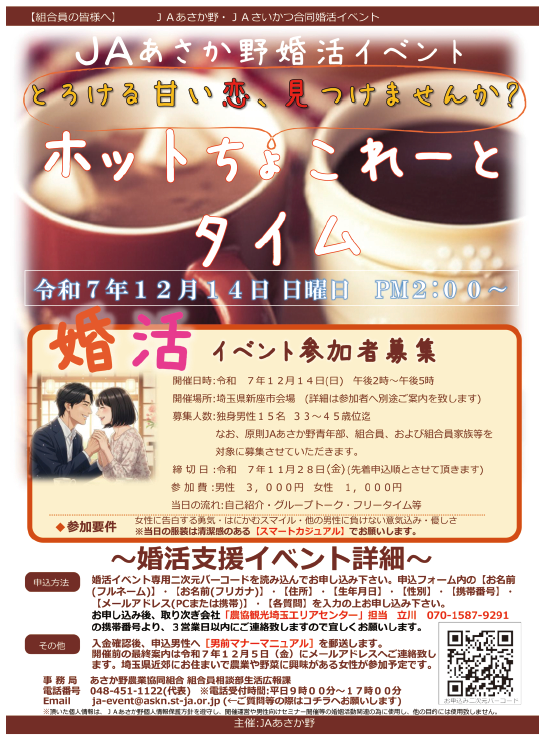 2025.11.26新着情報 イベントJAあさか野婚活イベント 参加者募集中 -
