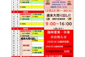 2025.11.26新着情報 イベント 直売所 直売所イベント(和光)和光農産物直売センター 12月イベントカレンダーの掲載 -