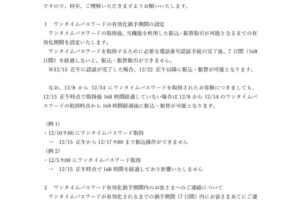 2025.12.05新着情報 重要なお知らせ 緊急のお知らせワンタイムパスワードの利用開始時における有効化猶予期間の設定について NEW -