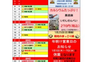 2025.12.30新着情報 イベント 直売所 直売所イベント(新座)新座農産物直売センター 1月イベントのお知らせ -