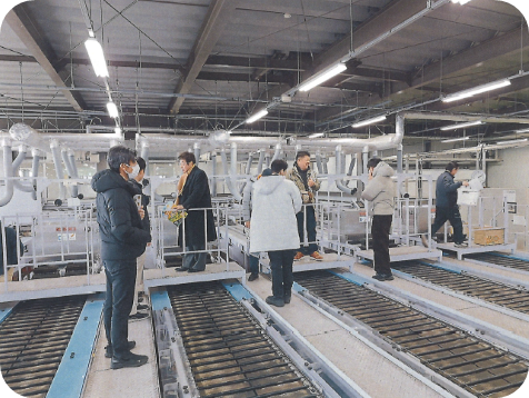 洗浄から選別・箱詰めまでの機械によるオートメーションの工程や、カメラ画像での規格選別を視察しました。