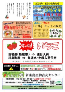 和光・新座農産物直売センターは、1月6日(土)より通常営業をいたします。