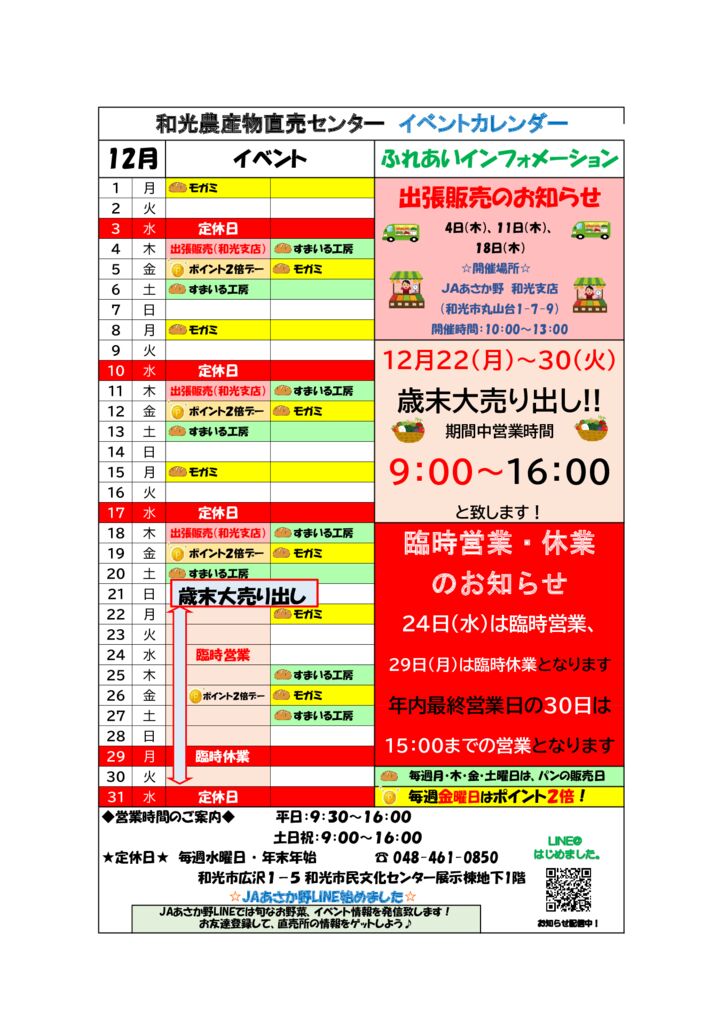 | 休業日 | 水曜日、年末年始 |