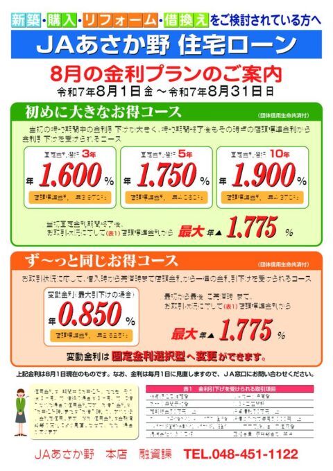 JA住宅ローン「金利選択型(とくとくプラン)」 NEW -